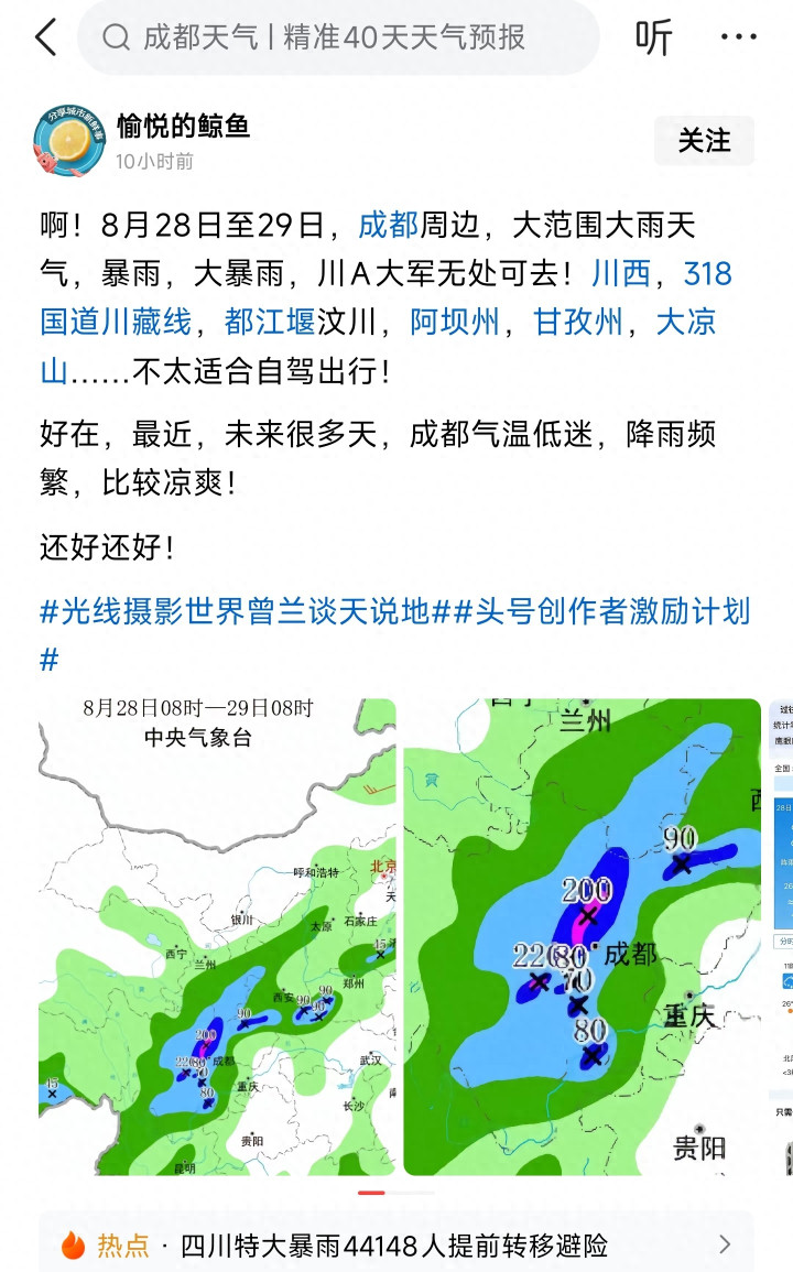 前段时间成都那边某些地区因为特大暴雨不是转移了将近5万人吗?你看看人家的温度来的太迅猛了。